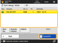 Ši funkcija leidžia įrašyti nurodytoje saugojimo vietoje (konfidencialių faksogramų dėžutė) gautus dokumentus, kurie atitinka nurodytas sąlygas. Konfidencialių faksogramų dėžutėje yra kelios dėžutės. Kiekvieną iš jų galima apsaugoti slaptažodžiu. Nurodę sąlygą, pavyzdžiui, įrašyti visus iš A įmonės gautus dokumentus į dėžutę Nr. 10, galėsite peržiūrėti tik jums reikalingus dokumentus. Ši funkcija leidžia nustatyti slaptažodį ir apsaugoti svarbius dokumentus nuo neįgaliotų asmenų peržiūros. Kai valdymo skyde esantis indikatorius Apdorojimas / duomenys šviečia žalia nemirksinčia šviesa, atlikite toliau pateiktus veiksmus, kad patikrintumėte / atspausdintumėte įrašytus dokumentus.