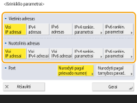Pasirinkite <Potinklio parametrai>, jei norite nurodyti IPv4 adresų diapazoną naudodami potinklio šabloną. Įveskite atskiras reikšmes prie <Adresas> ir <Potinklio kaukė>.