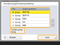 Spustelėkite <Nurodyti pagal prievado numerį>, jei nurodydami prievadus, kuriems taikoma IPSec, norite naudoti prievadų numerius. Pasirinkite <Visi prievadai>, jei norite IPSec taikyti visiems prievadų numeriams. Norėdami IPSec taikyti konkrečiam prievado numeriui, paspauskite <Vienas prievadas> ir įveskite prievado numerį. Nurodę prievadus, spustelėkite <Gerai>. Šio aparato prievadą nurodykite <Vietinis prievadas>, o ryšio kolegos prievadą nurodykite <Nuotolinis prievadas>.