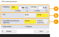 Jei funkciją „Perfect Forward Secrecy“ (PFS) nustatysite į <Įjungt.>, šifravimo rakto slaptumas išaugs, tačiau ryšio sparta sumažės. Be to, PFS funkciją būtina įjungti ir kitame ryšio įrenginyje.