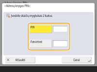 (Valyti), kad ištrintumėte PIN (paliktumėte teksto lauką tuščią), ir paspauskite <Gerai>.