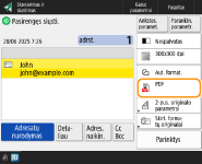 Pagrindinių nuskaitymo funkcijų ekrane nurodykite adresatą.