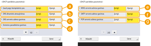 Įjunkite <Įjungt.> adresą, kurį norite užregistruoti kaip DNS serverį, dalyje <Nuo būsenos neprikl. adreso įregistr.>/<Rankinio adreso įregistravimas>/<Įsimenam. adreso įregistravimas>. Atminkite, kad automatinio atnaujinimo negalima atlikti, jei viskas nustatyta kaip <Išjungt.>.