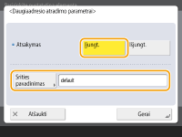 Nustatykite <Atsakymas> kaip <Įjungt.>, paspauskite <Srities pavadinimas> ir įveskite aprėpties pavadinimą.