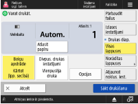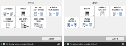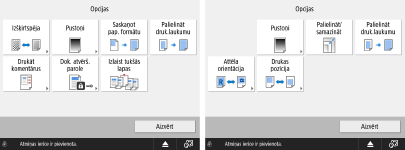 Drukas iestatījumu ekrāna opcijas