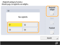 Izvēlieties kādu no <S1>–<S4> pogām un nospiediet <Reģistrēt/rediģēt>.