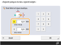 Norādiet malas <X> un <Y> garumu. Nospiediet <X> vai <Y>, lai ievadītu katras malas garumu, izmantojot ciparu taustiņus.