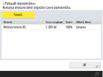 Atlikušā tonera līmeņa pārbaude