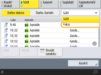 Lai izvēlētos darbu, ko atcelt, varat atlasīt <Jaunākais saņemtais darbs> vai <Nosūtāmais darbs>. <Darbs, kas jāatceļ, nospiežot Apturēt>