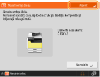 <Inicializēt pēc detaļu nomaiņas>. Nospiediet <Jā> sadaļā <Veltņa bloks>. Pārbaudiet, vai ekrānā ir redzams ziņojums <Inicializācija veikta.>, un tad nospiediet <Aizvērt>.