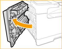 Pēc veltņa bloka izņemšanas, neievietojiet roku spraugā un nepieskarieties pamatiekārtas kreisās puses vāka iekšpusei, kā arī iekārtai, lai izvairītos no apdegumiem un citām traumām.