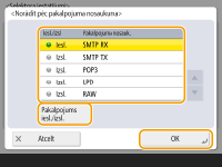 Nospiediet <Norādīt pēc pakalp. nosauk.>, lai izmantotu pakalpojumu nosaukumus, norādot portus, kuriem piemēro IPSec. Izvēlieties pakalpojumu sarakstā, nospiediet <Pakalpojums iesl./izsl.>, lai to iestatītu pozīcijā <Iesl.>, un nospiediet <OK>.
