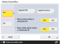 Kā PIN ievadiet skaitli, kas sastāv no septiņiem vai mazāk cipariem un nospiediet <Apstiprināt>. Lai apstiprinātu, ievadiet PIN vēlreiz un nospiediet <OK>. Ja nevēlaties iestatīt PIN, atstājiet šo vienumu tukšu.