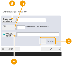 <URL sūt. iestat.>Iespējo saglabāto dokumentu kastītes vietrāža URL sūtīšanu pa e-pastu vai pārbaudīšanu Remote UI (attālā lietotāja interfeisa) logā.