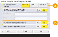 Lai veiktu autentifikāciju, izmantojot POP3 serveri, nospiediet <Iesl.>.