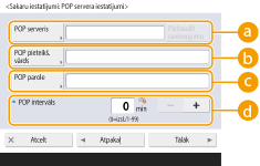 Kad [POP Password] ir norādīta Remote UI (Attālais lietotāja interfeiss), ja vēlaties mainīt un reģistrēt servera adresi sadaļā [POP Server], ir jāievada parole sadaļā [POP Password].