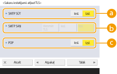 Lai kodētu sakarus, izmantojot TLS, kad saņemat e-pasta ziņojumus un interneta faksa sūtījumus, izmantojot SMTP serveri, nospiediet <Vienmēr TLS> vai <Iesl.>. Ja nevēlaties saņemt datus, kas nav kodēti, izvēlieties opciju <Vienmēr TLS>.