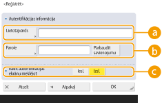 Kad meklējat adresātus un vēlaties parādīt lietotājvārda un paroles ievades ekrānu, nospiediet <Iesl.>.