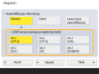 Izvēlieties servera LDAP versijas un rakstzīmju kodējuma kombināciju un nospiediet <Tālāk>.