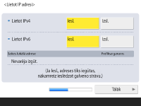Nospiediet <Iesl.> opcijai <Lietot IPv4> vai <Lietot IPv6> un nospiediet <Tālāk>. Varat izmantot gan IPv4, gan IPv6.