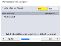 Nospiediet <Iesl.>, lai izmantotu adresi bez statusa, vai <Izsl.>, lai neizmantotu adresi bez statusa, un nospiediet <Tālāk>.