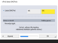 Nospiediet <Iesl.>, lai izmantotu DHCPv6, vai <Izsl.>, lai neizmantotu DHCPv6, un nospiediet <OK>.