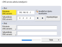 Nospiediet <Primārais DNS serveris> un <Sekundārais DNS serveris>, ievadiet DNS serverim IPv4/IPv6 adresi un nospiediet <Tālāk>.