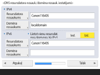 Ja IPv4 un IPv6 iestatījumi ir vienādi, nospiediet <Iesl.> opcijai <Lietot vienu resursdat. nos./dom.nos. kā IPv4>.