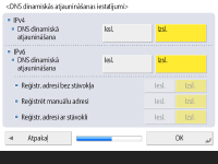 Lai atjauninātu automātiski, izmantojot DNS dinamiskās atjaunināšanas iestatījumus, nospiediet <Iesl.> opcijai <DNS dinamiskā atjaunināšana> un pēc tam nospiediet <OK>.