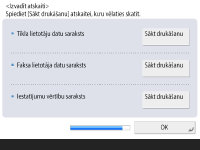 Kad drukāšana ir pabeigta vai tad, ja nevēlaties izdrukāt sarakstu, nospiediet <OK>.