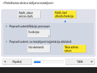 Ja izvēlaties <Iesl.> opcijai <Tastatūras autentifikācija>, nospiediet <Tālāk>.