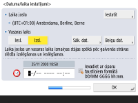 Ievadiet datumu un laiku un nospiediet <OK>.