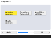 Ja izmantojat tikai faksa funkciju, nospiediet <Automātiska saņemšana>, vai, ja iekārtai ir pievienots tālrunis vai klausule, nospiediet <Fakss/tālrunis (autom. pārsl.)> un pēc tam nospiediet <OK>.