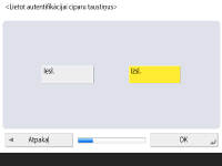 Ja izvēlaties <Izsl.> opcijai <Tastatūras autentifikācija>, nospiediet <OK>. Pārejiet uz 5. darbību.