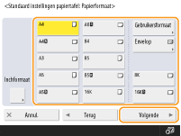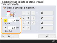 Als u de papierformaten die u het vaakst gebruikt, opslaat onder knoppen <S1> tot <S4>, kunt u ze met één aanraking oproepen. Opslaan van vrij formaat papier (Papier van aangepast formaat)
