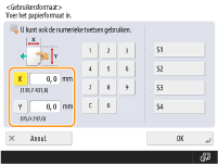 Als u de papierformaten die u het vaakst gebruikt, opslaat onder knoppen <S1> tot <S4>, kunt u ze met één aanraking oproepen. Opslaan van vrij formaat papier (Papier van aangepast formaat)