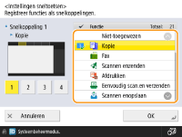 Selecteer de functie uit de lijst. U kunt de plaats van de geselecteerde snelkoppeling en de functie die eraan is toegewezen, in het voorbeeldscherm links van de lijst controleren.