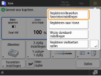 Druk op <Favor.instel.> op het scherm met basisfuncties voor kopiëren.