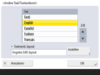 U kunt de taal wijzigen die op het aanraakscherm en het toetsenbord wordt weergegeven.