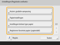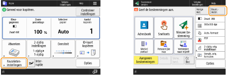 Als u regelmatig dezelfde combinatie van instellingen voor kopiëren, faxen en scannen gebruikt, is het handiger als u deze instellingen opslaat als <Favorieteninstellingen>.
