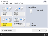 2-zijdig> kunt u alleen papier met A4-formaat gebruiken.Plaats uw originelen op de glasplaat wanneer u <Boek