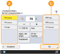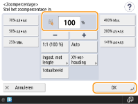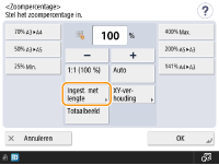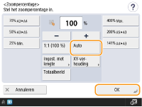 Indien u <Auto> instelt, dient u handmatig een papierformaat te selecteren. Als u geen papierformaat selecteert, dan wordt het zoompercentage automatisch ingesteld op het formaat van het papier dat zich in papierlade 1 bevindt.