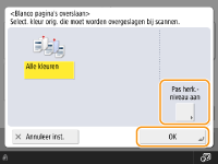 Als de ingestelde grootte van het origineel kleiner is dan die van de scan, wordt deze mogelijk niet correct overgeslagen.