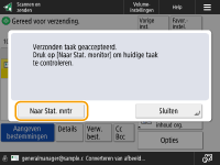 Wanneer <Toon melding als taak is geaccepteerd> is ingesteld op <Aan>, kan het scherm <Statusmonitor> worden weergegeven vanaf het volgende scherm dat wordt weergegeven nadat een verzendopdracht wordt ontvangen. <Toon melding als taak is geaccepteerd>