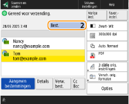 Voor het bekijken van het totale aantal gespecifieerde bestemmingenBoven in het scherm wordt het totaal aantal gespecificeerde bestemmingen weergegeven. Zo kunt u voor verzending bevestigen dat het aantal bestemmingen correct is.