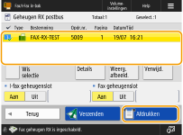 Als u op <Verzenden> drukt, kunt u bestemmingen opgeven waar het document naartoe moet worden verzonden. Om het document na verzending uit het fax-/I-faxpostvak te verwijderen, drukt u voor verzending op <Verwijder na verzending>.