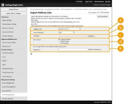 Klik op [Adreslijsten] in [Afzonderlijk importeren/exporteren].