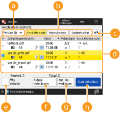 Beperkingen bij afdrukken vanaf mobiele apparatenAls u de documenten in de wachtrij van de machine afdrukt via Canon PRINT met de functie voor vrijgeven en afdrukken, kunt u niet de afdrukinstellingen van meerdere opdrachten tegelijk wijzigen en kunt u geen pagina's verwijderen op het voorbeeldafbeeldingsscherm.