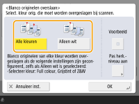 Alleen bestemmingen van het type <E-mail> of <Bestand> kunnen worden opgegeven wanneer <Blanco originelen overslaan> is ingesteld. Verzenden kan niet worden uitgevoerd als een bestemming met een ander type dan <E-mail> of <Bestand> is ingesteld.