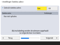 Druk op <Aan> om het stateless adres te gebruiken of op <Uit> om het niet te gebruiken, en dan op <Volgende>.